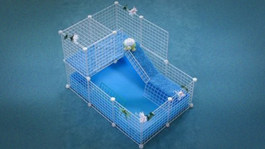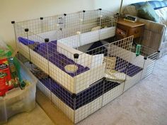 The skinny pig requires a comfortable and stimulating environment in their cage or enclosure as well as a comfortable place to sleep. The enclosure should be at least 7.5 square feet of cage, it does not matter if this is all horizontal or if it is a vertical cage with ramps and multiple floors.