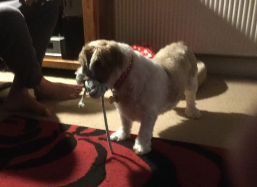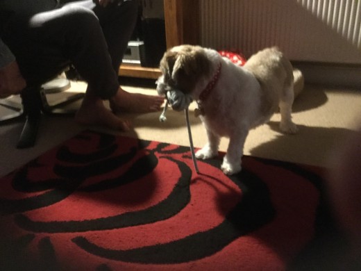 One of Tinka’s favourite toys, and trust me he has many, is a long piece of nylon come cotton rope my husband tied into knots.