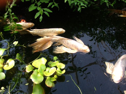 Butterfly Koi tend to have a more slender body than other tradition koi breeds. Their fin to body ratio exceeds that or tradition koi by 500-1000 percent. Much like traditional koi Butterfly Koi come in many colors and patterns including white, orange, yellow; often a mixture of these colors are fond. Some have a touch of silver or black spots throughout their scales. Small Butterfly Koi can be kept in aquariums but they are a much more popular pound fish. Adults can reach the size of 36 inches in length. They are considered an easy fish to care for. They have a peaceful temperament and typically get along well with other fish of similar size. Butterfly Koi kept in pounds need study pound plants as they tend to nibble at the roots. They can withstand temperatures ranging from 33-90 degrees Fahrenheit.