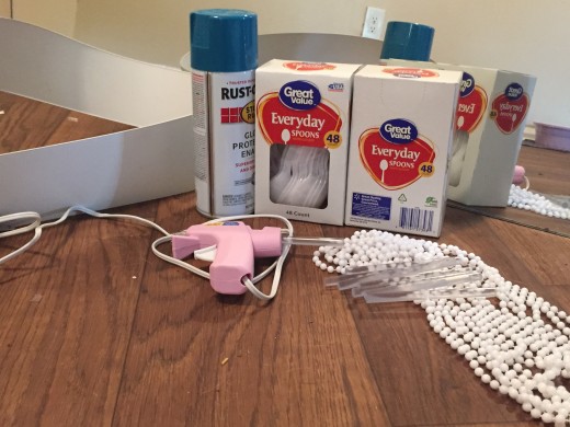3. Plastic Spoons (I was surprised with how many I used.. depending on size of mirror and amount of spoon rows you plan to do - I used 450ish)