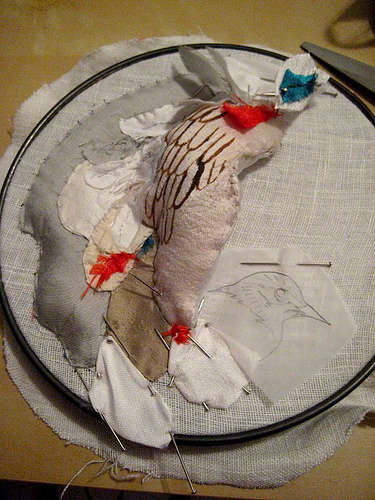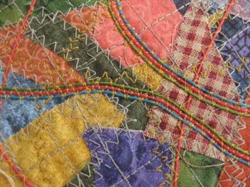 - You don't have to stitch foundation fabric on all areas of the backing fabric, you can leave some areas untouched and work in detail on the other areas.