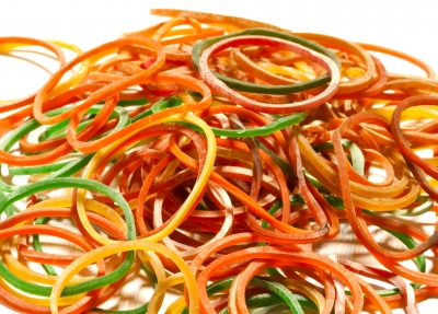 - Stretch the rubber band so that the other side of the rubber band is on the tip of your index finger.