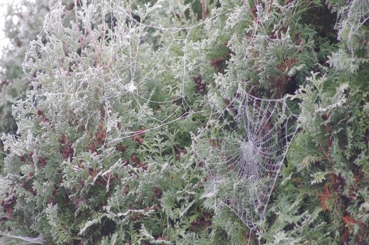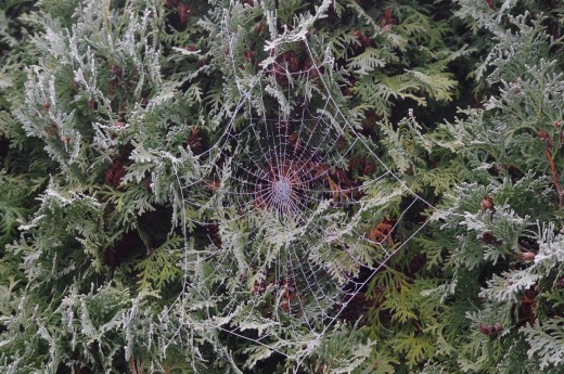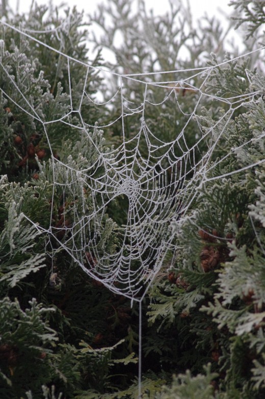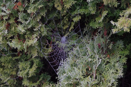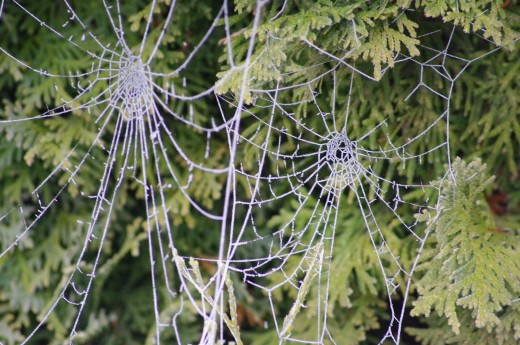 These frosty engineering feats reminded me that I had taken photos during the summer of the invisible death traps when the sun or the dew had given away their presence.