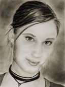 My goal was to catch the intensity that I saw in her eyes...this was accomplished with many layers of carbon applied with a stump then removing a little and re-applying the carbon. I also added a tad bit of graphite for its reflective qualities. All this and a lot of patience rendered the end results you see here.