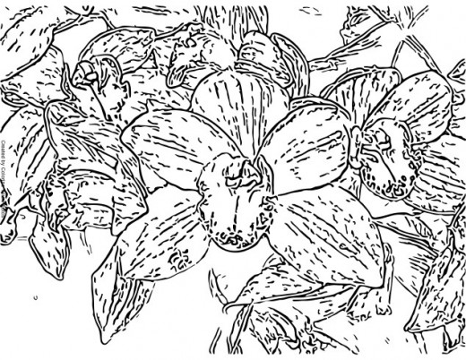 So please read on, and I hope you enjoy the coloring pages I've created for this page. Each coloring page is presented next to my original photograph of orchid flowers, so you can try to match the real flowers' colors - or just go wild and create your own unique orchids! You'll find full downloading instructions below. Thanks for checking them out!