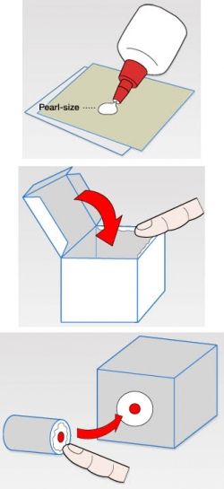 2. Place glue, not on the tab you want to glue, but on the area the tab will contact.