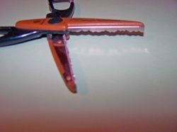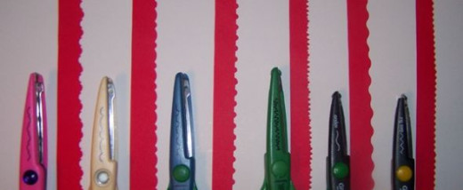 Decorative edge scrapbooking scissors are one of the best tools you can have in the craft cabinet when you start out. You can do so much with them, they are very versatile. They are not like regular scissors. If you look carefully at the edge of the scissor in the photo on the right, you'll see that the edges form a pattern or design.