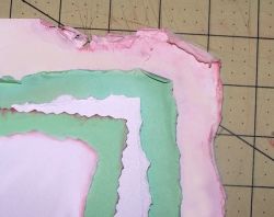 Another great way to get the edges of torn, jagged cut or water distressed paper (after it's dry) discolored is by running an ink pad along the edge, or by using colored art chalks brushed on with a dry paint brush or cotton swab.