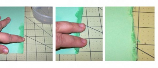Dip your finger in the water and rub along the edge. Alternatively, you can use a damp sponge or a cue tip. Now you do not want to saturate the paper, you merely want it to start breaking apart a bit around the edges.