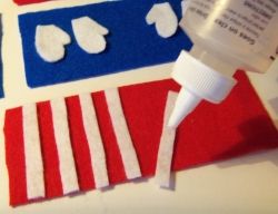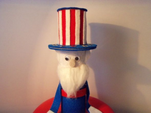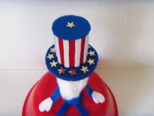 Uncle Sam's hat can be decorated with stars. You can add a little bit of tacky glue to make sure the stars adhere to the felt.