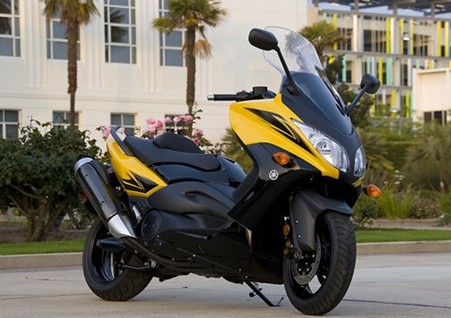 The TMAX weighs in at 489 lbs so definitely not a light weight but its large 15" wheels, dual shocks and front and rear disc brakes make the bike controllable. All of this performance yields a respectable 47 mpg out of its 4 gallon tank. There are several accessories like a larger windshield, passenger backrest, DC outlets, rear rack etc if need be. The TMAX will more than put a smile on the face of a rider who wants a shiftless motorcycle that gets good fuel mileage, looks sharp, has a lot of room and will flat out "fly". The only negative, like most larger maxi scooters is the price, which comes in at 9,000. But with Yamaha's proven quality, this bike will more than pay for itself.