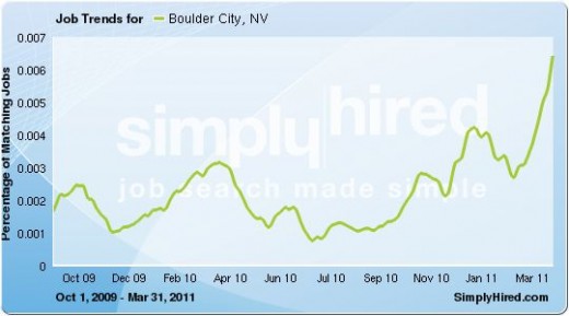 June 2011 provided over 18,450 jobs to the Boulder City Area, many of these openingslocated in Henderson and Las Vegas Nevada. Leading advertisers of jobs are: