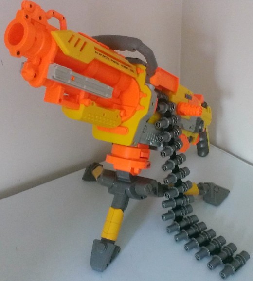 I came so close to keeping this gun. I had to work really hard to remember we were running a business. The automatic Nerf guns are great fun and they fire the darts at an alarming rate and for a really good distance. The tripod of the Havoc Fire can be removed so you can use it like "Ol Painless" off the Predator movie. They do take a lot of batteries and they are very power hungry and go through the batteries nearly as fast as they fire the darts. These automatic Nerf guns will bring very good money and usually sell very easily. There is also a large parts market so none working guns can be stripped down and components sold off.