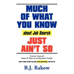 B. J. Rakow, Ph.D., Author, "Much of What You Know about Job Search Just Ain't So." This is a serious book about job search which readers say is enlightening but also fun to read.