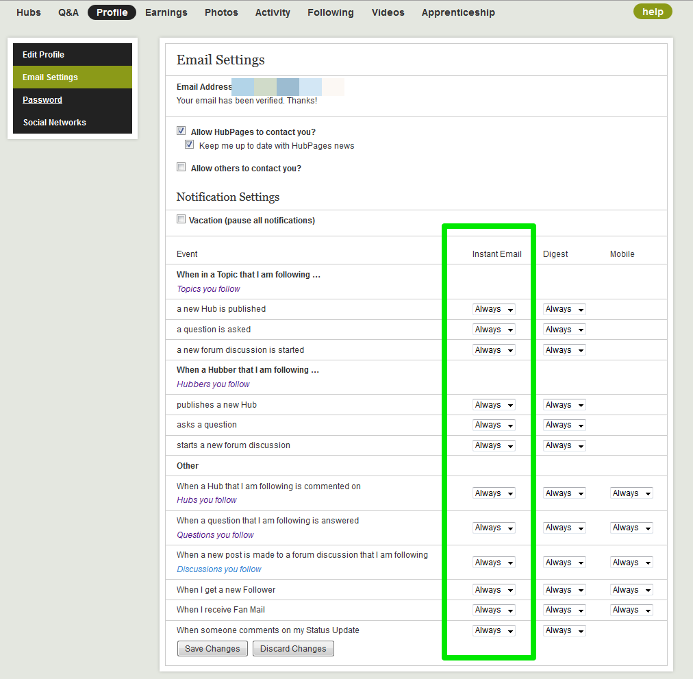 I noticed that I have not received one notification from HP since yesterday at 11:55 a.m.! I am not receiving any notifications on hubs I have commented on or newly published hubs from hubbers I follow. Is anyone else having this trouble? I have typed my email address in again...