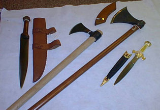 Daggers: Daggers always seem to be the main weapon for any rogue, assassin, thief or shady looking person. But with its easily concealable ways and quick strikes it makes a deadly close quarters weapon. The dagger can be used to parry blows somewhat and attack unknowing victims, some can even be thrown and picked back up. The downside however is that they have a very short range, coming into a battle against anyone with a longer weapon can prove to be a very difficult scenario to win in. Also if you are going to run around with only a dagger chances are you might be wearing little to no armor at all as well, your best chances would be to sneak up on an enemy if you wish to use a dagger.