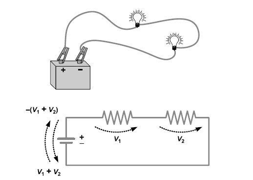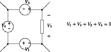 The sum of voltages V1 , V2 , V3 and V4 is zero