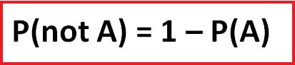 The probability of an event not happening is known as the complement event. To work out the complement of an event subtract the probability from 1. This can be summarised by the following formula:
