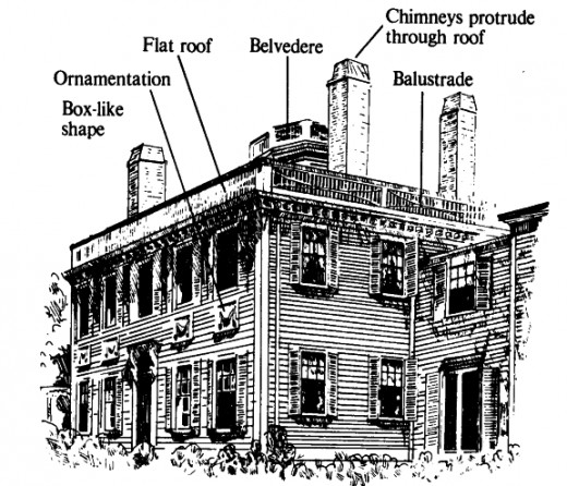 One such style was the Federal style; which was actually more of an adaption “of an English style called Adam after the architect brothers who popularized it there”. The Federal style was quite unlike the Georgian British style. Georgian style buildings had a hip roof that sloped downwards to the walls and were known for having an oval or round parlor. The new Federal style buildings were the opposite; they were symmetrical and avoided most type of curves and arcs. The Massachusetts state capitol, Heard House, in Danvers, and the Pierce-Nichols House, in Salem, are all good examples of the Federal style. The Heard House in Danvers is the best model of a Federal style house. It has a portico, a non-hip roof, and the small fanlight also known as a semicircular window on its second floor. The Federal style shows that America’s architecture was just as different as their political stance, if not more so, from Great Britain.