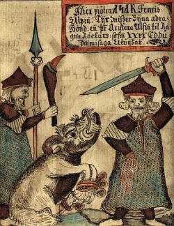 Skirnir hurried back to Asgard with the silk rope and gave it to Odin. The Allfather invited Fenrir to the island of Lyngvi in middle of Lake Amsvartnir to test his strength.