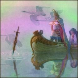 Perhaps Arthur did actually die and was carried away in order that he might return again. Some say he was taken away in a boat by women, three women or four, or possibly nine. All of them are keening and wailing in true Celtic fashion.