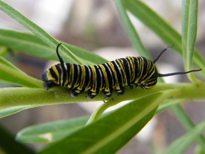 2. Caterpillar Stage - Between 4 to 6 days after the eggs are lain, the tiny caterpillar inside the egg begins to wriggle, signifying that it is now ready to hatch. The caterpillar then makes its way out by chewing a hole at the inner side of the egg. This caterpillar will feast on its nutrient-rich shell before moving on to look for Milkweed leaves, its main diet. As the caterpillar continues to grow, it sheds its skin several times to accommodate its rapidly growing body.
