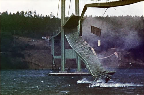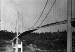 Having seen some of the old video clips of the Tacoma-Narrows Bridge collapse, I really wanted to learn more. I found out that the original bridge, that opened with much fanfare on July 1, 1940, and stunningly collapsed into Puget Sound on November 7, later that same year. The bridge's instability in high winds inspired its nickname "Galloping Gertie".