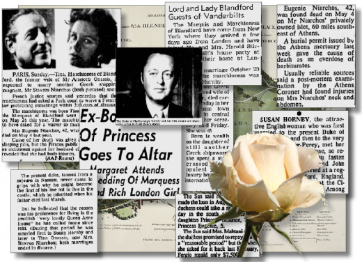When John-Spencer Churchill's father married his second wife, an additional American connection plus a Onassis connection entered the family. His wife was Laura Charteris, the British widow of Michael Canfield, who was reputedly the Duke of Kent's illegitimate son who had been brought up in the States. His previous wife had been Lee, the sister of Jackie Kennedy Onassis.