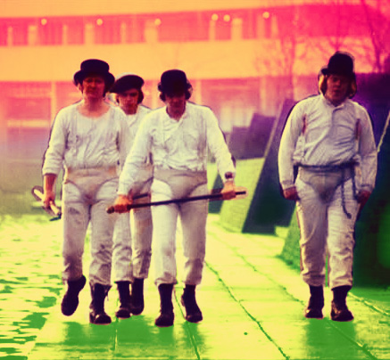 A Clockwork Orange’s cult following has grown as the movie has gotten older. Many people became avid Malcolm McDowell fans, and many other groups such as punks and Goths have adopted the futuristic, yet simple all white with suspenders “ultra-violent” outfits Alex and his “droogs” wear. Thus, the cult following of the film is pretty good.