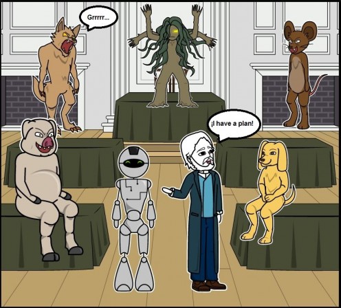 Then the mutants made their arrival and the dog occupy the place of the turtle because it still didn´t leave his house; later entered the representative of the humans: Professor Mark, everything seemed of the most normal and occupied their places in the Presidium, immediately the mutant hyena said the following words;