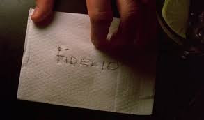 By the way, while we are talking about the music, Kubrick comes up with a delicate reference when Nick writes down the password, Fidelio, for the secret meeting. It is not only the password for the entrance, but also it is the very name of Ludwig van Beethoven’s only opera. In the opera, there is a protagonist called Leonore who is disguised as a prison guard named "Fidelio," and who rescues her husband, Florestan from death. This directly foreshadows the interrogation scene where Mandy sacrifices herself to save Bill. Therefore, that’s how Kubrick salutes Beethoven and art lover audience.