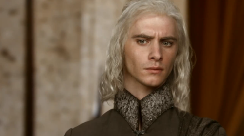 Son of King Aerys II, brother of Daenerys. Viserys is a vile, arrogant, and foolish man, likely due to his upbringing as a prince, and has no qualms about marrying off his sister to a nomadic chieftain in order to seize power in Westeros.