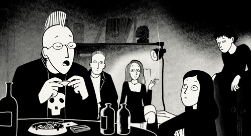 What caught by mind is there is just one scene where Satrapi is wearing a red dress and the color is shown. The same is shown in the last scene of the movie. I still wonder why this was done and would like to know the reasons for it.