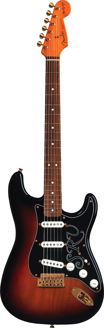 The most well-known guitar Stevie used was "Number One," a.k.a. "First Wife." Although Stevie described it as a '59 Fender Stratocaster, when Custom Shop employees disassembled it after his death they discovered that the neck was a '62 and the body a '63. However, the pickups were indeed from 1959, which is why Stevie presumably referred to it as such. He also changed the fretwire to Dunlop 6100, switched the vibrato to a left-handed setup, and changed out the strings to a much heavier gauge, usually .013-.058. He tuned down a half-step to compensate for the heavier string uge and the increased tension on the neck.