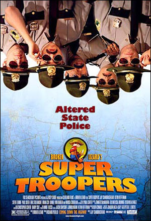 This flick stars some folks you've probably never heard of (I know I didn't know any of them) but should have. Jay Chandrasekhar plays Trooper Ramathorn, or Thorny, Paul Soter plays Trooper Foster, Steve Lemme plays Trooper MacIntyre, or Mac, and Eric Stolhanske plays Trooper Roto, or Rabbit.