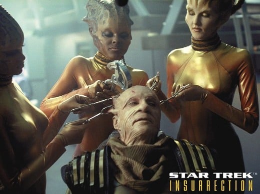 Admiral Dougherty teams up with Ru’afo to covertly relocate the Ba’ku from their planet, so they can harvest all the rejuvenating radiation from the planets rings.