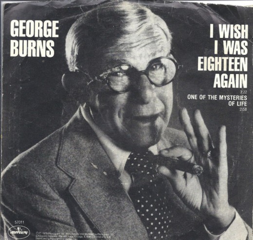 George Burns The show business icon recorded what was supposed to be a novelty song to support one of his movies (Burns was hot in Hollywood after his series of "Oh, God!" movies with John Denver), "I Wish I Was 18 Again." But the 45 rpm record, complete with picture sleeve, was no joke, hitting the Top Forty in March of 1980 when Burns was just exactly a year younger than Tony Bennett is today: 84 years and 2 months old.