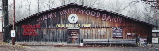 Back in Arkansas, he was hailed as a conquering musical hero...for a time. Mountain View, Arkansas, sits smack dab in the middle of the Ozarks, which has always been the Mecca for artists, craftsmen, and musicians. Jimmy was appointed the head of the brand new Ozark Folk Center in Mountain View, a state-run facility that celebrated early American music. But being the outspoken, crusty old guy that everyone loved, Jimmy soon drew the ire of the then-governor, David Pryor (father of the current Arkansas U. S. Senator Mark Pryor). After a storm of controversy, Jimmy left the Folk Center in a huff and formed his own, scaled down version of a musical theatre. He called it "Jimmy Driftwood's Barn," which pretty much described it accurately. On the side of the highway, visitors would swarm the parking lot on a Friday and Saturday night, go inside, sit on splintery old bleachers, and hear early folk music as it was meant to be performed. Sometimes, some pretty famous people would drop by unannounced to help Jimmy play his music--Dolly Parton, Porter Wagoner, and even Jane Fonda once. Mountain View, by the way, was a focal point for historic musical figures. Remember Grandpa Jones from early Bluegrass and "Hee Haw" fame? He had his own dinner theater right down the road.