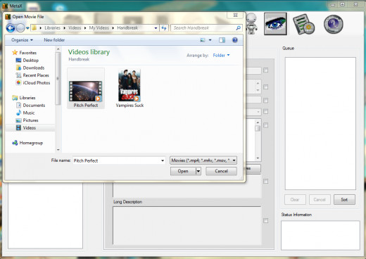 Notice the difference between Pitch Perfect and Vampires Suck? Vampires Suck has already been tagged (and is in MP4 Version). Pitch Perfect has not been and is in M4V. After choosing Pitch Perfect it loaded the file into the application.