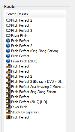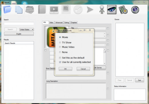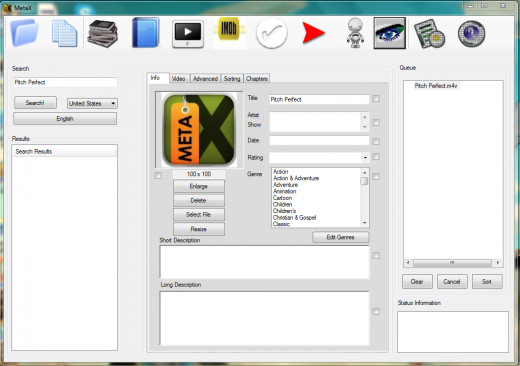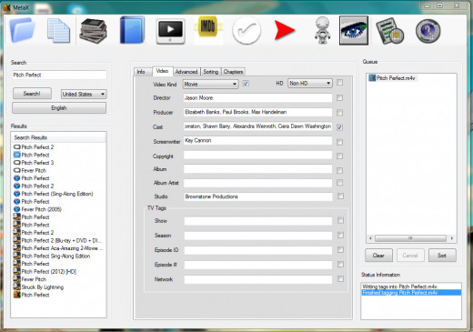 A list will populate in the results bar, these are loaded from Itunes, Amazon, IMBD, and more. I have found for Movies the ones marked with a "Q" work the best. Pick one of those. For TV Shows the ones marked "TV" work best (but you must either know the season and episode or the episode title for MetaX to properly tag the show).