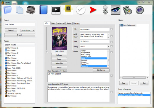 Tagging Step One: Chose the Media Type, is it a movie, TV Show episode, Music Video Etc.? Pitch Perfect is a movie so I chose that option.