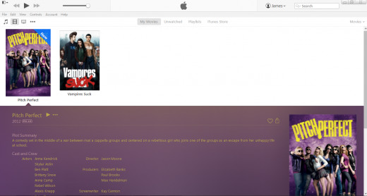 Here we see a copy of Pitch Perfect that I converted from DVD to M4V. (Please read this article to see how to convert your DVD's to M4V for FREE). The movie shows up under the Home Video tab on Itunes but it is ugly. Just a standard file photo, with no information about the movie.