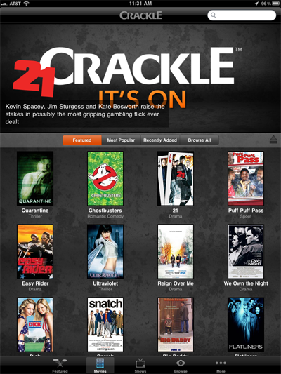 Crackle is easy to navigate and the commercials shown before the features are short and usually interesting.