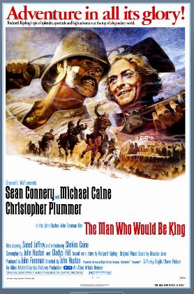 - 1975 The Man Who Would Be King Sean Connery, Michael Caine, Christopher Plummer, directed by John Huston. A wonderful five star-portrayal of Rudyard Kiplings tale of two renegade British Soldiers who go off in search of the mythical nation of Kafiristan, once the eastern boundary of Alexander the Great’s empire, and the site where the conqueror found his great love, Roxanne. (I highly recommend this film to anyone who enjoys adventure and Connery – and Caine. In fact, I love this film so much, I’ve added the trailer for it.)