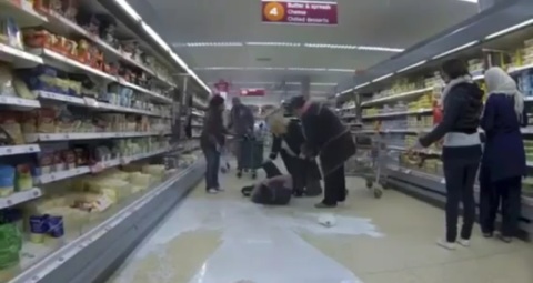 You're out on a grocery run getting your weekly shopping done. You're near the dairy section procuring yourself a gallon of milk when all of a sudden you hear the sound of someone slipping and then a loud thud. You turn to look and you see a teenager laying on the ground in the middle of a pool of milk.....a busted milk jug at his side.