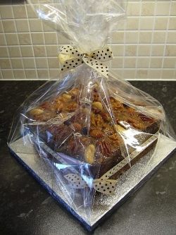 A cheap way to spruce it up before regifting it is to get a clear gift basket bag from the dollar store. Just stick the fruitcake in it and fancy it up with a ribbon or bow.