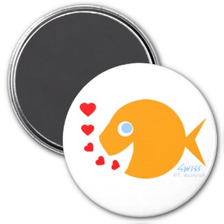 Goldfish Love Cartoon Magnet with Tiny Hearts