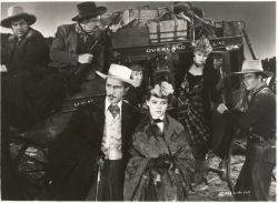 Each of the travellers is cleverly and economically sketched in. Dallas, the dance-hall gal (ie prostitute) who is run out of town, together with the alcoholic, disgraced frontier doctor Boone. Peacock, a timid whiskey salesman; Hatfield, a southern gambler; Mrs Mallory, the pregnant wife of an army officer; and Gatewood, a banker who is making off with the assets. Working outside the coach are Buck, the portly driver, and Curly, the local sheriff. In addition to this mix is the rugged outlaw, the Ringo Kid, who is picked up on the road shortly after the coach's departure, and who has broken out of jail to seek revenge for the murder of his father and brother.