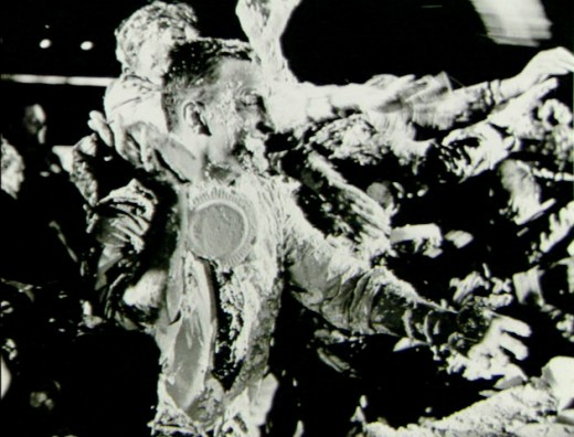 If I had written this article a year earlier, I would have included the pie fight in the 1927 Laurel & Hardy classic Battle of the Century. Highlights from that fight were shown in the documentary The Golden Age of Comedy, taken from a reel that was reportedly decomposing and soon after thrown away. It was feared the complete pie fight was lost forever when in the summer of 2015 the complete second reel was rediscovered hiding in someone's film collection. Amazingly though, Battle of the Century did not have the most notorious lost pie fight in cinema history. That honor belongs to a fight that to date has only been seen by a handful of people and has never been cut into any motion picture. Stanley Kubrick's classic cold war dark comedy Dr Strangelove: Or How I Learned to Stop Worrying and Love the Bomb was originally suppose to have a different ending. A pie fight in the war room.
