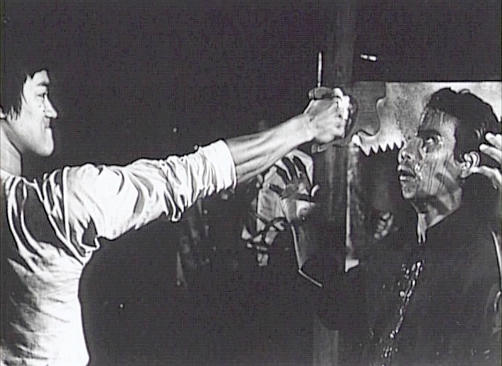Perhaps the best known edit takes place during Bruce Lee's iconic ice factory fight. Lee grabs a saw off the ground and in a fit of anger leaps at a gangster. In both the English and Chinese versions you can hear an audible edit in the soundtrack as well as see the splice in the film where the edit was made. After the edit, Bruce Lee is no longer holding the saw, and one of the gangsters is missing. According to those who were lucky enough to see the movie in it's limited engagement run, what had been cut was Bruce Lee slamming the saw deep into the skull of one of the gangsters ( and possibly even yanking the saw out horizontally to cause more damage. ) while not the only gory footage to be cut from the final print, it has become the most notorious, partially due to the obvious edit. Even for those who never heard of the saw-in-the-head deletion, know that they saw Bruce Lee pick up a weapon and it vanishes. One reason given for it's removal was not that it was too violent, but that it simply never looked real. A fake saw with a gap was placed over an actors head and pulled out in reverse. And then the film itself was reversed to make it look as if Lee was slamming the saw into the actors skull. But supposedly the special effect looked too fake, ruining the credibility of the rest of the fight.